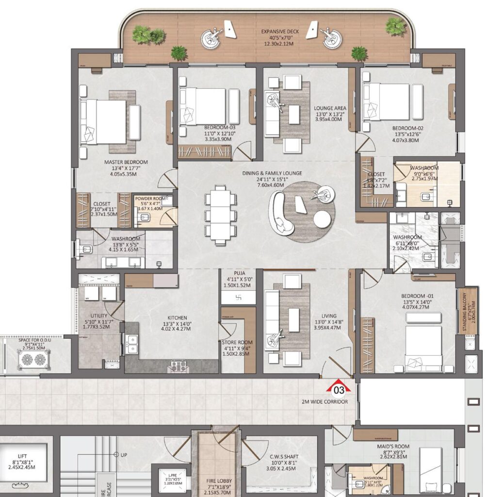 Spread across 9.7 acres with 2 Residential towers (G+57* floors), & 1 Commercial tower (G+60* floors) this gated community offers spacious 2, 3, and 4 BHK homes with 3 levels of basement parking.